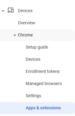 2. Navigate to Devices -> Chrome -> Apps & Extensions.
