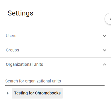 4. Ensure that the correct Organization Units (groupings of chromebooks) have been selected.